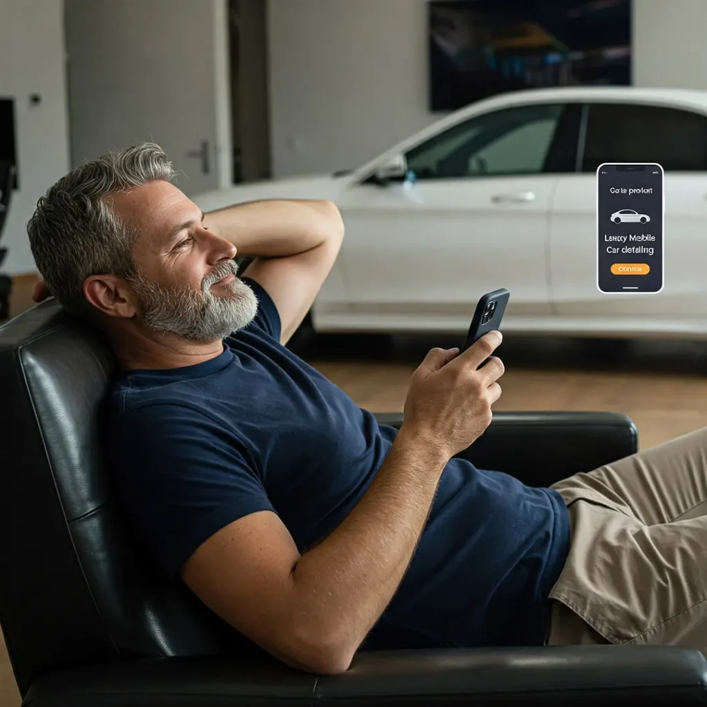 Complete your payment and relax! We’ll arrive at the scheduled time to make your car shine.